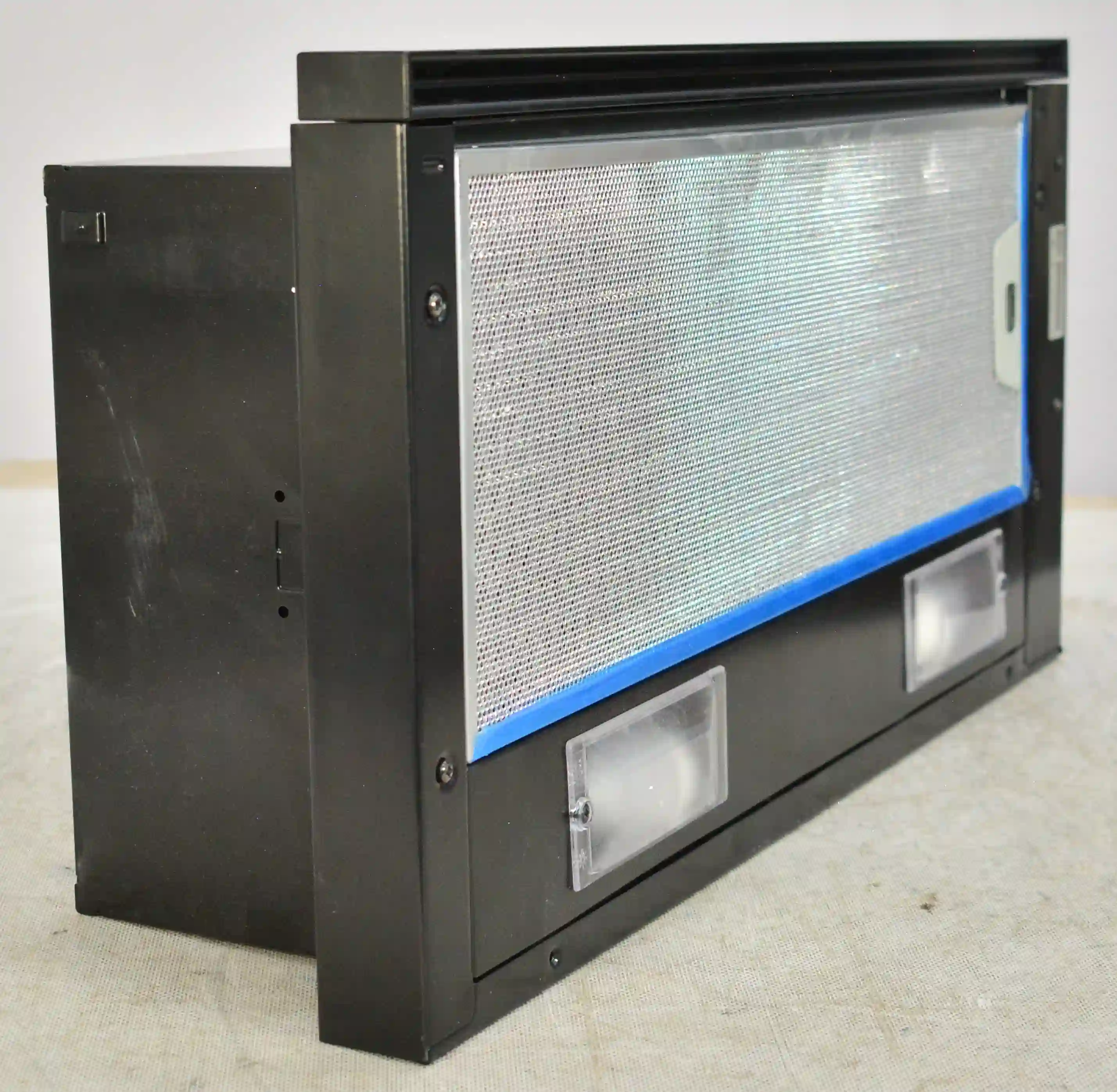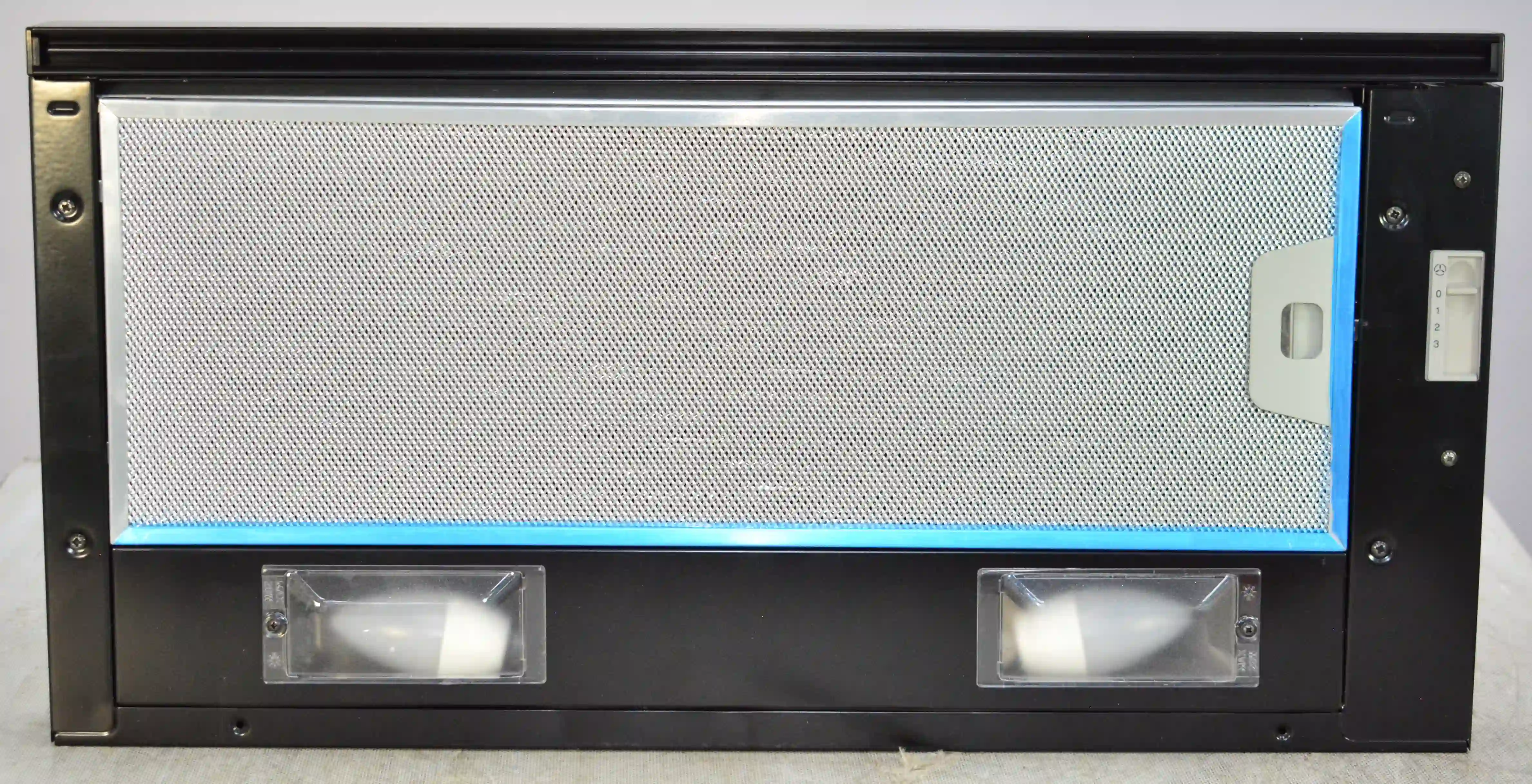 На корпусе из нержавеющей стали предусмотрен ползунковый переключатель для выбора скорости работы мотора. Две LED-лампы мощностью 4Вт обеспечивают освещение варочной панели в любое время суток. Для активации двигателя достаточно выдвинуть внутреннюю стеклянную панель. Встроенный антивозвратный клапан исключает проникновение неприятного запаха из вентиляции обратно в комнату.