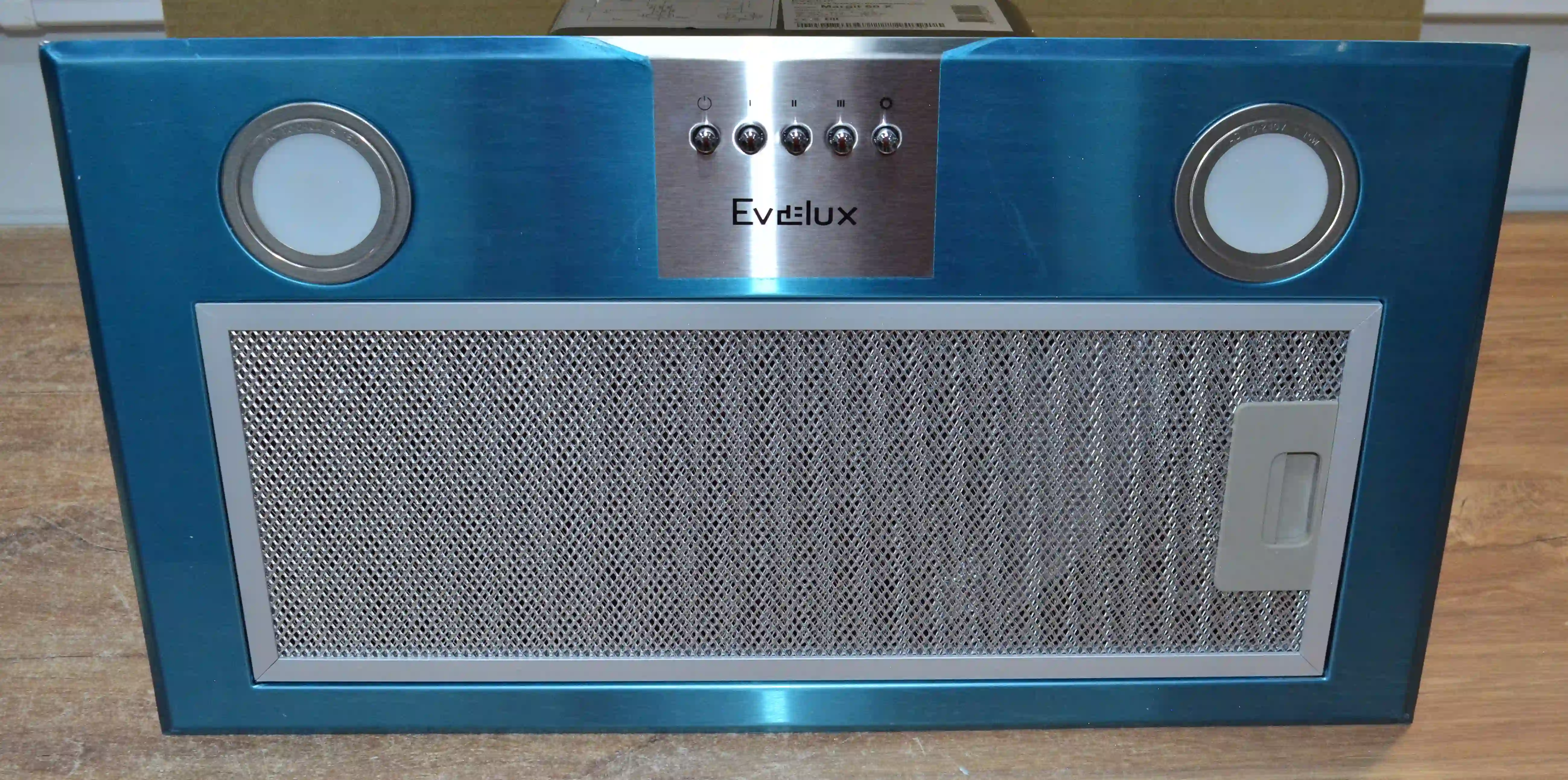 Вытяжка EVELUX Margit 60 оснащена светодиодной подсветкой. Вытяжной короб полностью скрыт за фасадом настенного шкафа, и универсален для любой кухни.