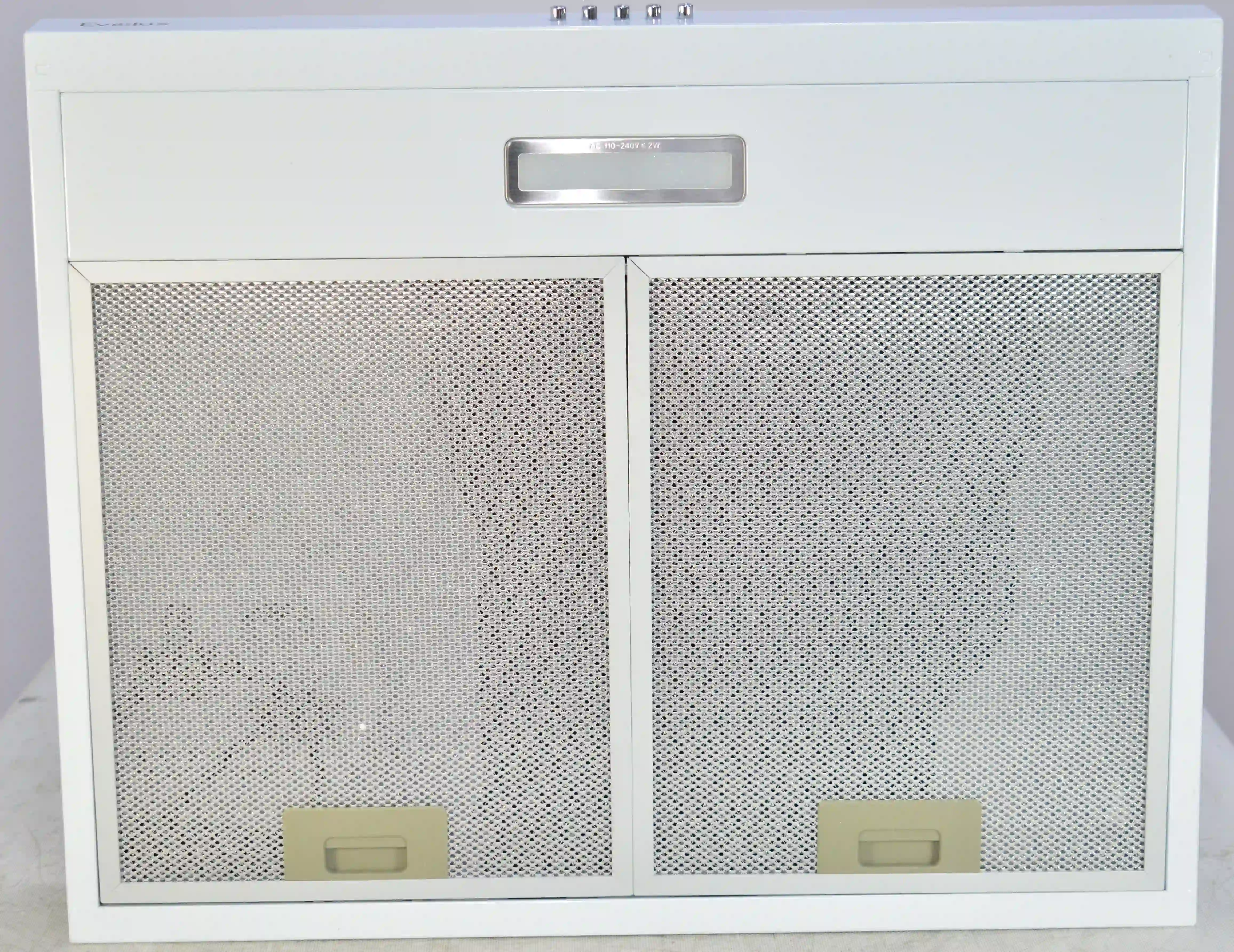 Элегантная белоснежная подвесная вытяжка Evelux Ulla 60 W выполнена из металла, что является залогом ее долговечности, при этом она благодаря своему изысканному дизайну придает рабочей зоне нотку утонченности. Устройство демонстрирует производительность в 390 кубических метров в час, эффективно очищая воздух на кухне от жира, дыма и неприятных запахов. Вытяжка предлагает три режима работы, а также оснащена двумя алюминиевыми жировыми фильтрами и может функционировать в режиме рециркуляции воздуха - при установке угольных фильтров. В корпус прибора встроена светодиодная лампа мощностью 2 Вт, создающая равномерное и комфортное освещение, к тому же вытяжка обладает низким уровнем шума - всего 43 дБ.
