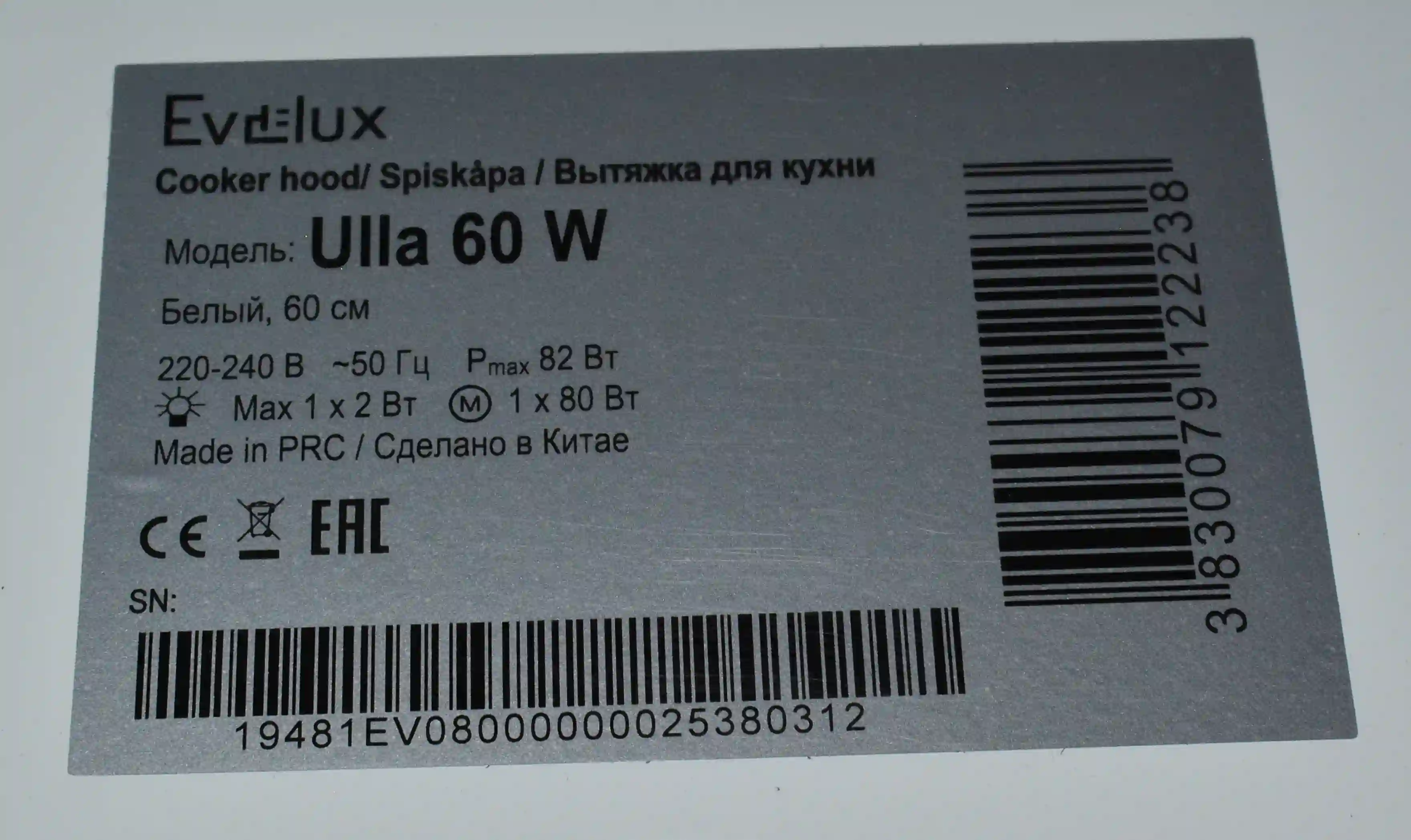 Встраиваемая вытяжка EVELUX Ulla 60 W k6 000076138