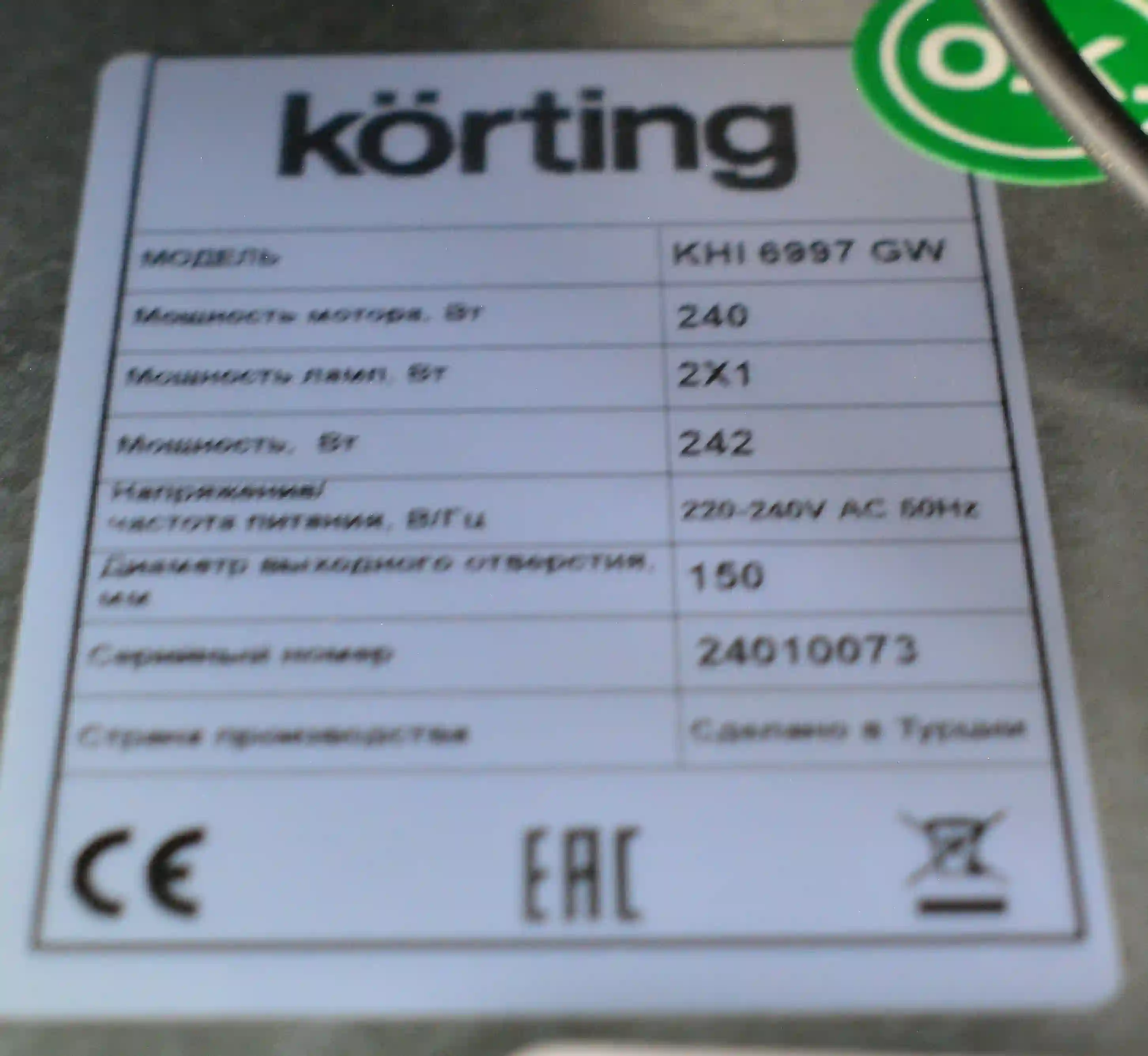 Встраиваемая вытяжка KORTING KHI 6997 GW k6 000056559