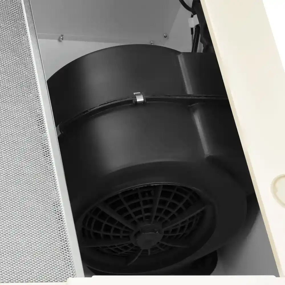 Вытяжка функционирует в двух режимах: отвода воздуха с производительностью до 1500 м3/ч и рециркуляции с показателем 1000 м3/ч. Производитель рекомендует использовать модель на площади до 40 м² — удобно для больших кухонь, в том числе совмещенных со столовой или гостиной. Три скорости работы позволяют гибко регулировать мощность в зависимости от сложности стоящей задачи. Так, для обычного приготовления пищи и освещения воздуха подойдет первая и вторая, а третья устранит чад при интенсивной жарки и быстро очистит воздух, если на плите что-то подгорит. Механическое кнопочное управление обеспечивает удобство и надежность. Вытяжка оснащена обратным клапаном, который исключает попадание посторонних запахов обратно в помещение.