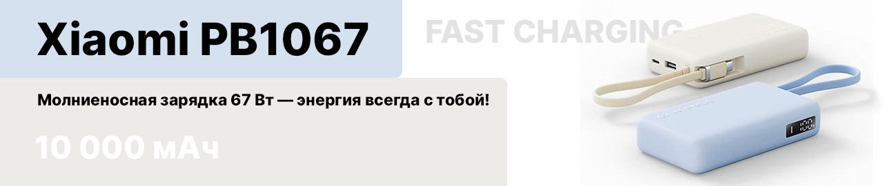 Компания Xiaomi вывела на рынок новый портативный аккумулятор Xiaomi 10000 67W, который сочетает впечатляющую емкость 10 000 мАч с поддержкой сверхбыстрой зарядки мощностью 67 Вт.